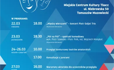 Miejskie Centrum Kultury zaprasza również na galę podsumowującą tegoroczną edycję Tomaszowskich Teatraliów, podczas której przyznane zostaną nagrody. Początek gali w MCK Tkacz w sobotę, 28 marca, o godzinie 16.00.
