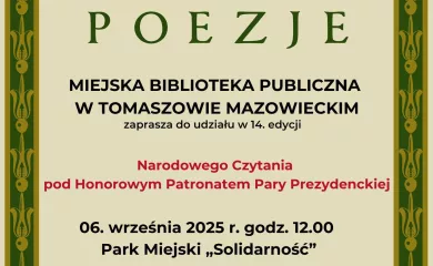 Sobotę możemy spędzić w Parku Solidarność, gdzie dokładnie w południe rozpocznie się Narodowe Czytanie pod patronatem Pary Prezydenckiej. Wzorem lat poprzednich, tomaszowska Biblioteka bierze udział w tej ogólnopolskiej akcji, zapraszając do wspólnego czytania mieszkańców miasta., tym razem będą to Poezje Jana Kochanowskiego. Przyjdź, posłuchaj, przeczytaj! Spotkajmy się, by razem celebrować piękno polskiej literatury! Niech wspólne czytanie połączy pokolenia i przypomni piękno naszej literackiej tradycji.