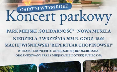 Wieczorem spotkajmy się Parku Solidarność, gdzie o godzinie 18 odbędzie się ostatni w tym sezonie „Koncert parkowy”. Dla miłośników muzyki Fryderyka Chopina zagra na fortepianie Maciej Wiśniewski. Z kolei dla fanów literatury Miejska Biblioteka Publiczna przygotowała w trakcie koncertu bookcrossing.