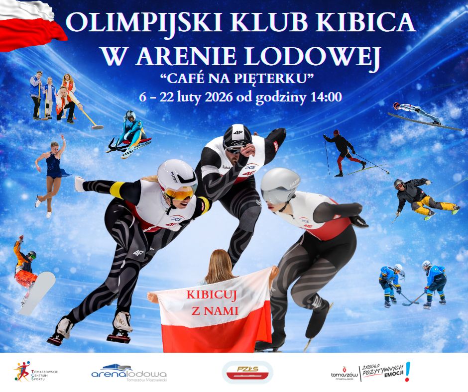 Tomaszowskie Centrum Sportu zaprasza do wspólnego kibicowania podczas olimpijskich startów polskich łyżwiarzy szybkich. W dniach 6–22 lutego 2026 roku w Café na Pięterku, zlokalizowanej w Arenie, funkcjonować będzie Olimpijski Klub Kibica.