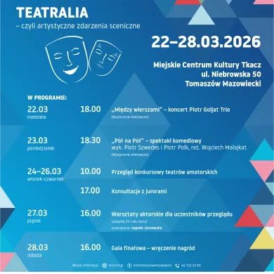 XIX edycja Tomaszowskich Teatraliów odbędzie się w dniach 22-28 marca 2026 roku w Miejskim Centrum Kultury Tka…