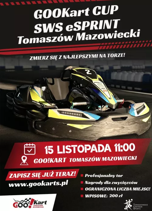 Już 15 listopada o 11 rusza w Arenie kolejna edycja GOOKart CUP SWS eSPRINT – emocje, rywalizacja i ogrom adrenaliny gwarantowane! Przypominamy, że tor jest oficjalnie wpisany do międzynarodowego systemu SWS (Sodi World Series) – Twoje wyniki liczą się w światowym rankingu.