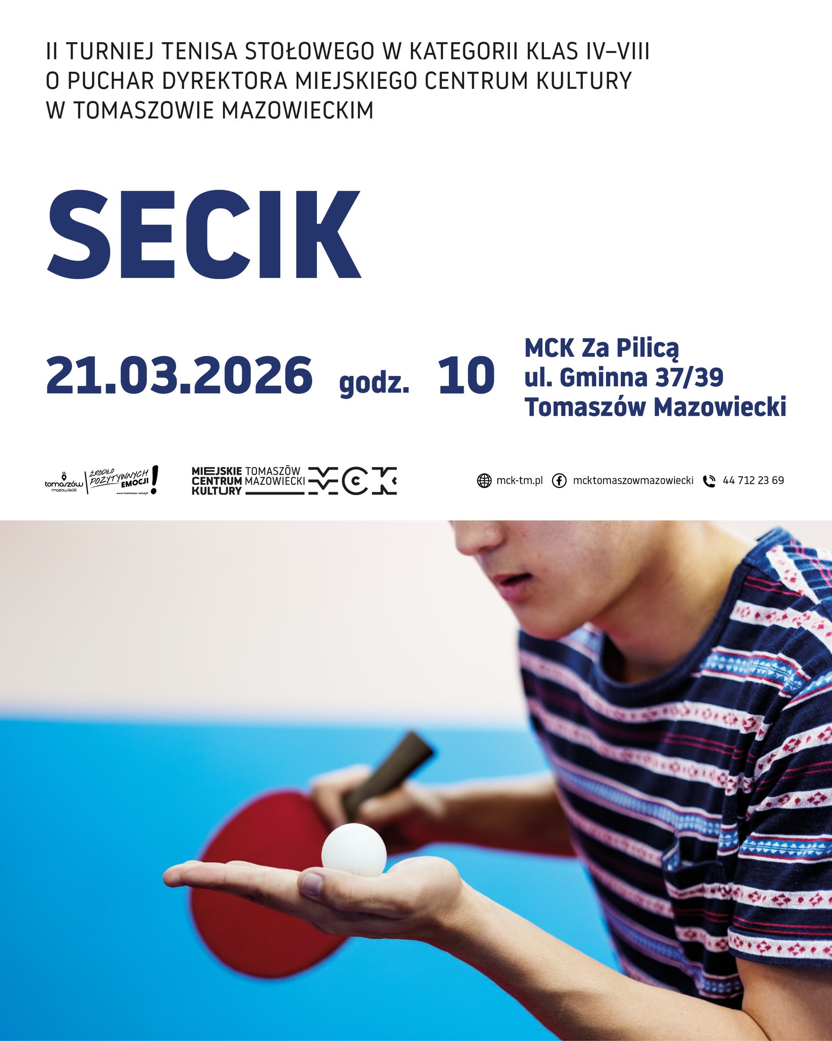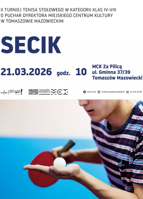 Już 21 marca (sobota) o godz. 10:00 w MCK Za Pilicą spotkają się młodzi miłośnicy tenisa stołowego, by stanąć do rywalizacji w II Turnieju Tenisa Stołowego „Secik” o Puchar Dyrektora Miejskiego Centrum Kultury. Wydarzenie skierowane jest do uczniów klas IV–VIII, którzy chcą sprawdzić swoje umiejętności przy stole i zmierzyć się z rówieśnikami w pełnej emocji rywalizacji.