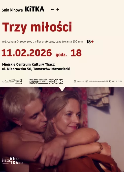 Już 11 lutego o godzinie 18:00 zapraszamy do Miejskiego Centrum Kultury Tkacz na kolejny seans z cyklu Ale Kino, podczas którego zobaczymy film „Trzy miłości” w reżyserii Łukasza Grzegorzka ze znanymi i lubianymi aktorami w rolach głównych.