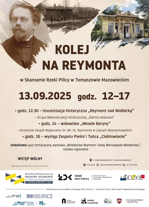 Skansen Rzeki Pilicy zaprasza 13 września w godzinach 12.00-17.00 na wyjątkową imprezę kulturalną pod hasłem "Kolej na Reymonta", które przeniesie nas w czasy Władysława Reymonta i jego literackiego świata.