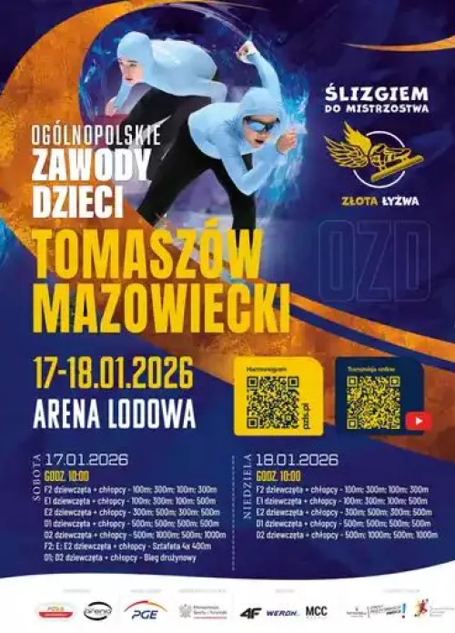 Po Mistrzostwach Europy Arena Lodowa nie zwalnia tempa. Już 17–18 stycznia 2026 do naszego miasta zawitają najlepsi młodzi zawodnicy z całej Polski, by powalczyć o sportowy wynik w Ogólnopolskich Zawodach Dzieci – Złota Łyżwa. Zapraszamy do kibicowania! Wstęp wolny!