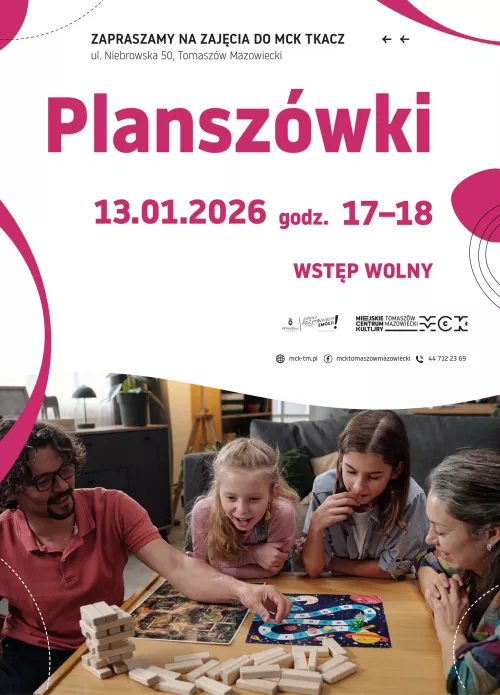 Już 13 stycznia o godz. 17:00 zapraszamy na planszówki w MCK Tkacz. Będą gry, dobra atmosfera i masa śmiechu - niezależnie od tego, czy jesteś starym wyjadaczem, czy dopiero zaczynasz swoją przygodę z planszówkami.