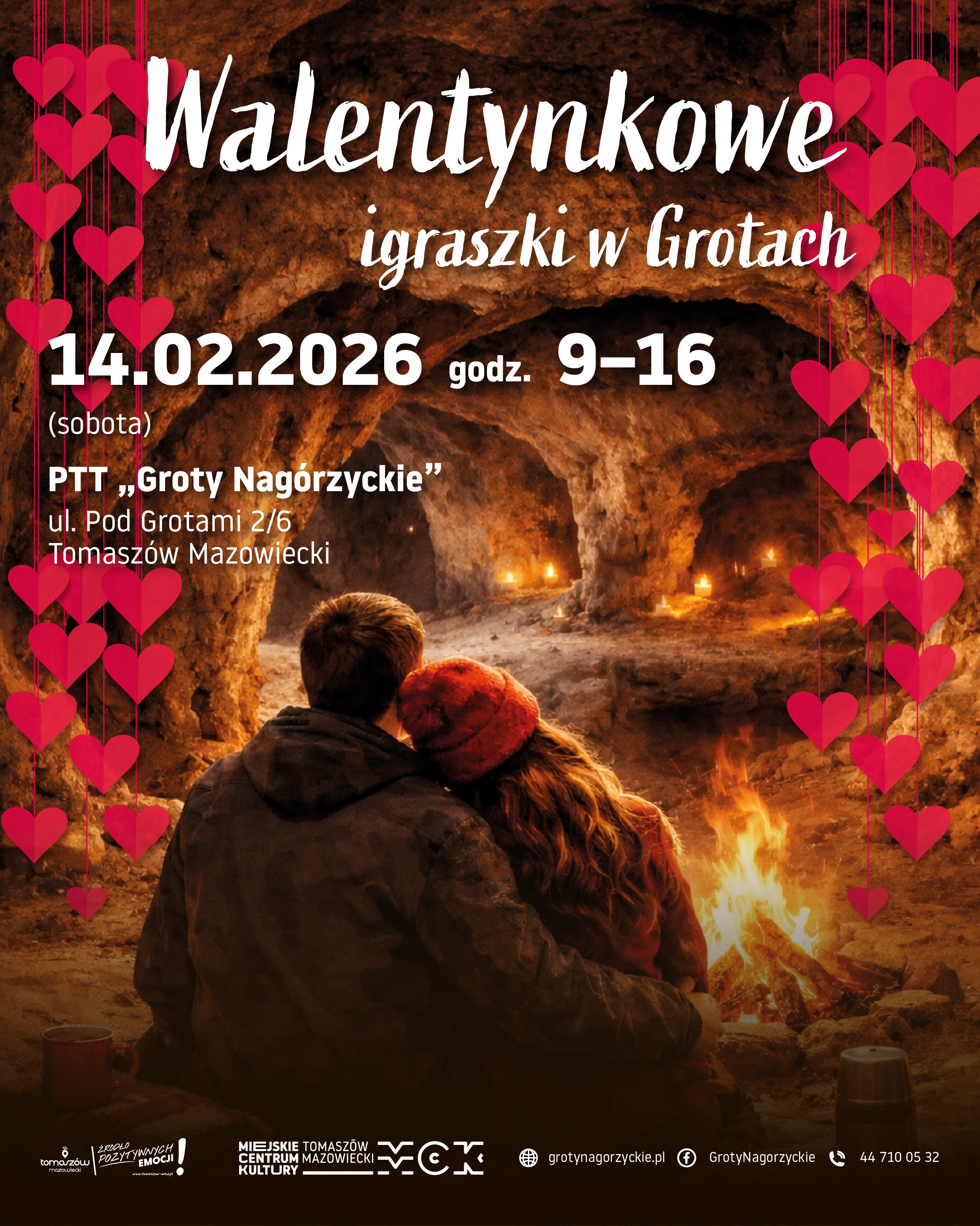 W sobotę, 14 lutego, już od samego rana — od godziny 9:00 do 16:00 — zapraszamy na Walentynkowe igraszki w Grotach — wydarzenie pełne romantycznych historii, tajemnic i ciepłych emocji, które rozgrzeją podziemne korytarze. 💞🔥