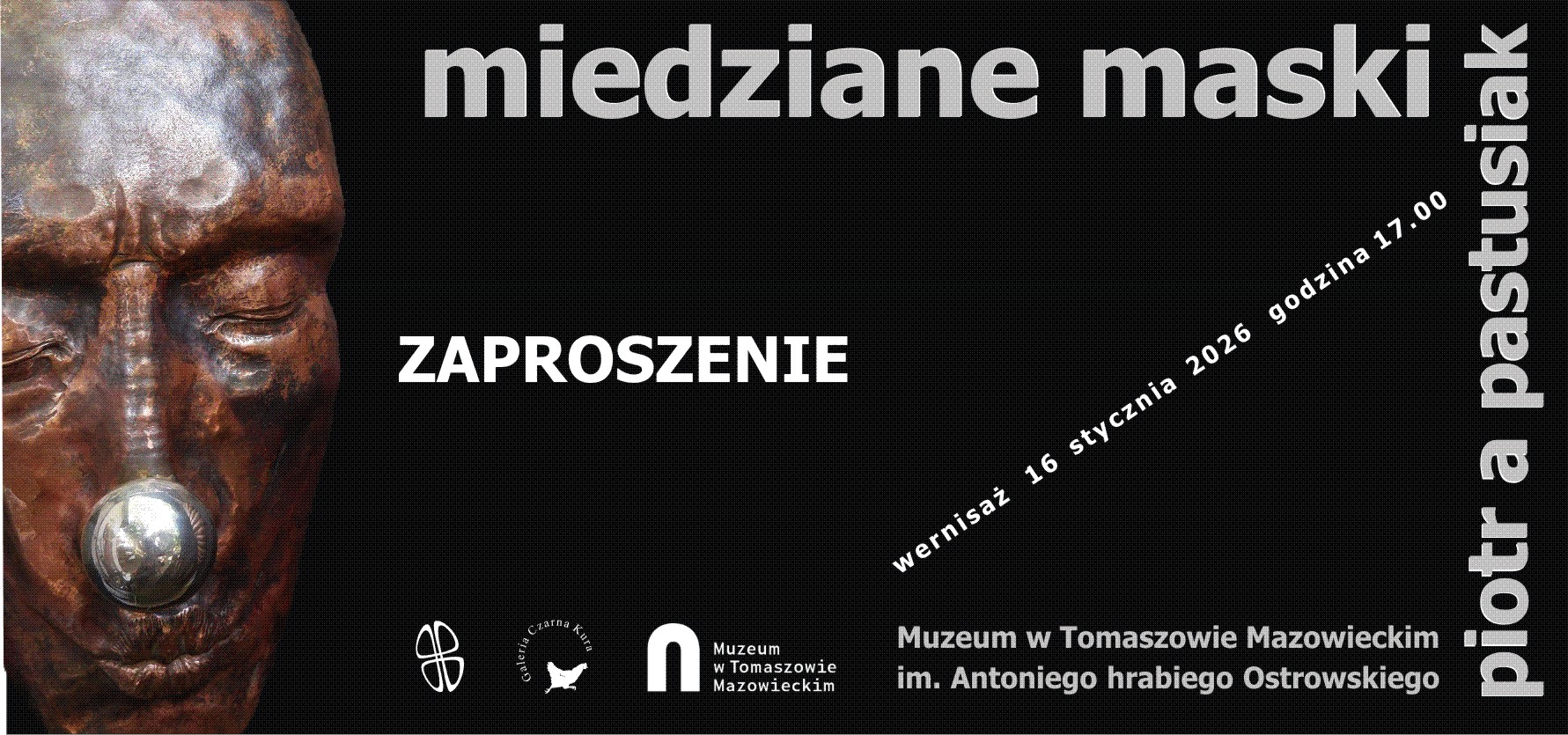 Muzeum w Tomaszowie Mazowieckim im. Antoniego hr. Ostrowskiego i Galeria Sztuki „Czarna kura” zapraszają 16 stycznia o godzinie 17 (Muzeum, ul. P.O.W. 11/15) na wernisaż wystawy Piotra A. Pastusiaka „Miedziane maski”. Wystawa potrwa do 1 marca 2026.